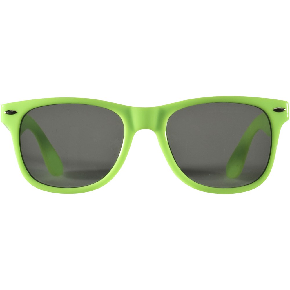 These retro-designed sunglasses are the ideal promotional giveaway during summer festivals, events or other sunny outdoor activities. This eyewear conforms to EN ISO 12312-1, has UV400 lenses which are rated as Category 3, making it the perfect choice for protection against bright sunlight. Thanks to the PC plastic material, the sunglasses are lightweight and comfortable to wear.
